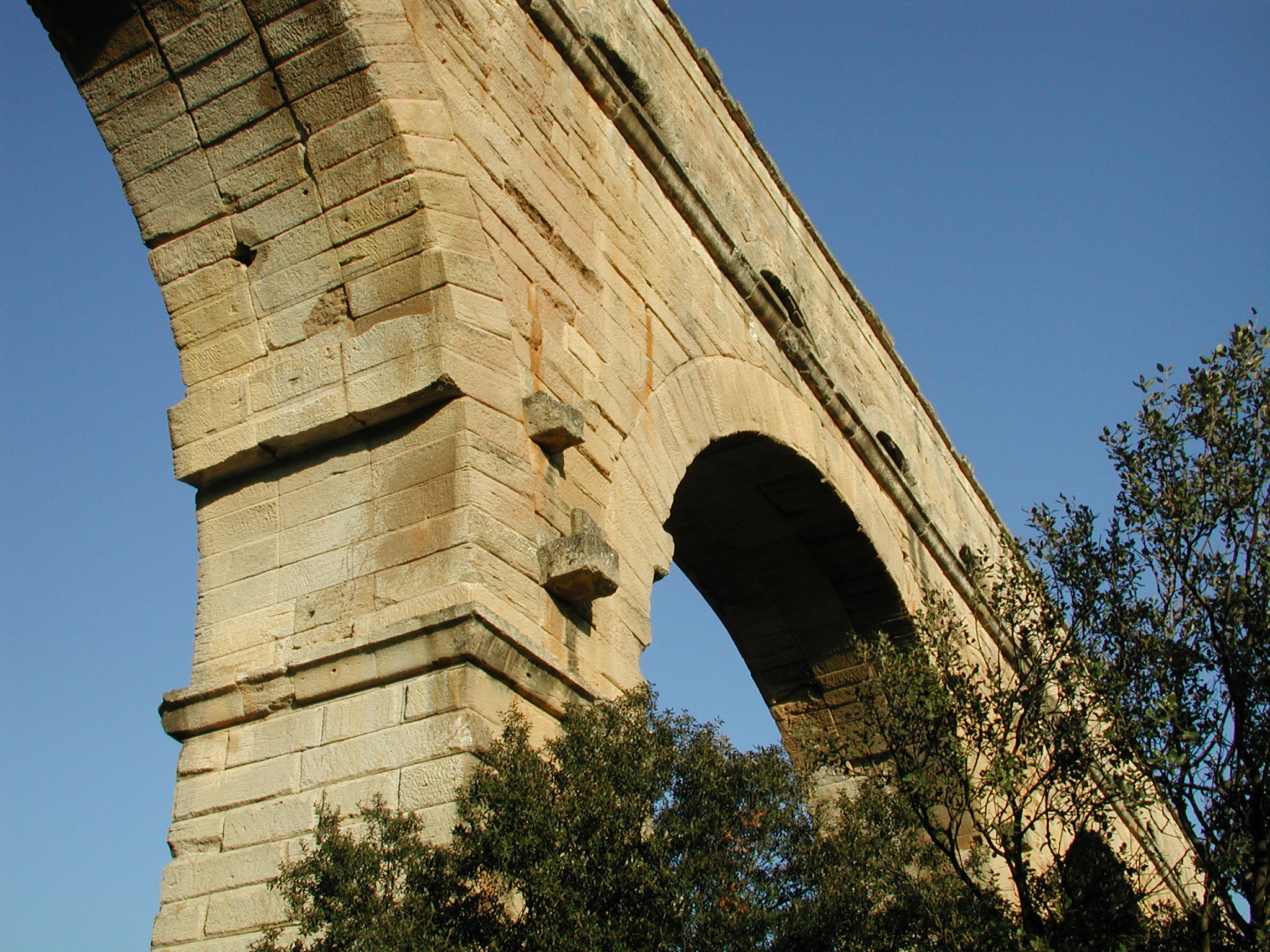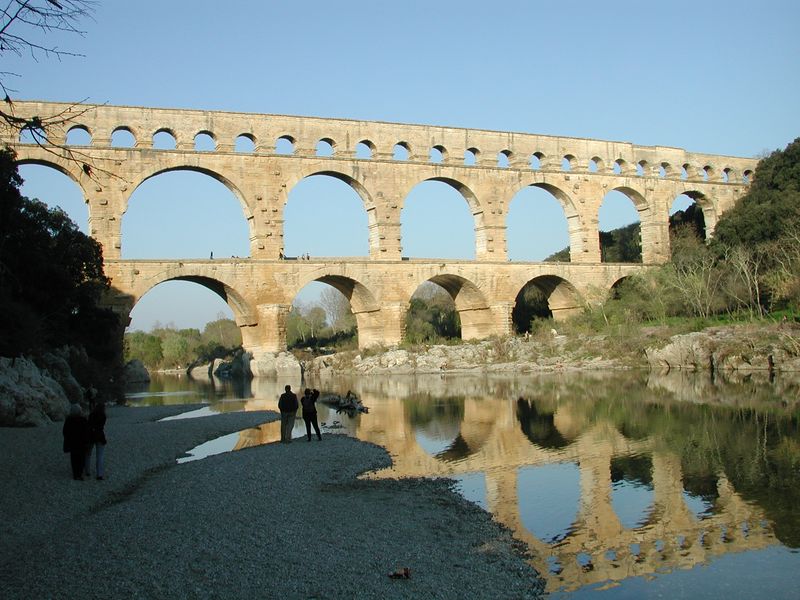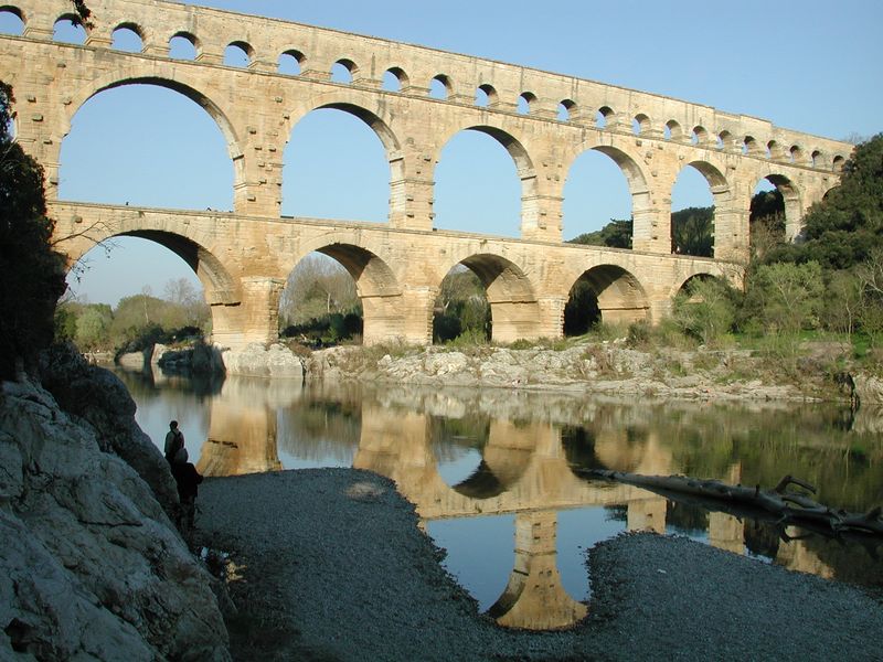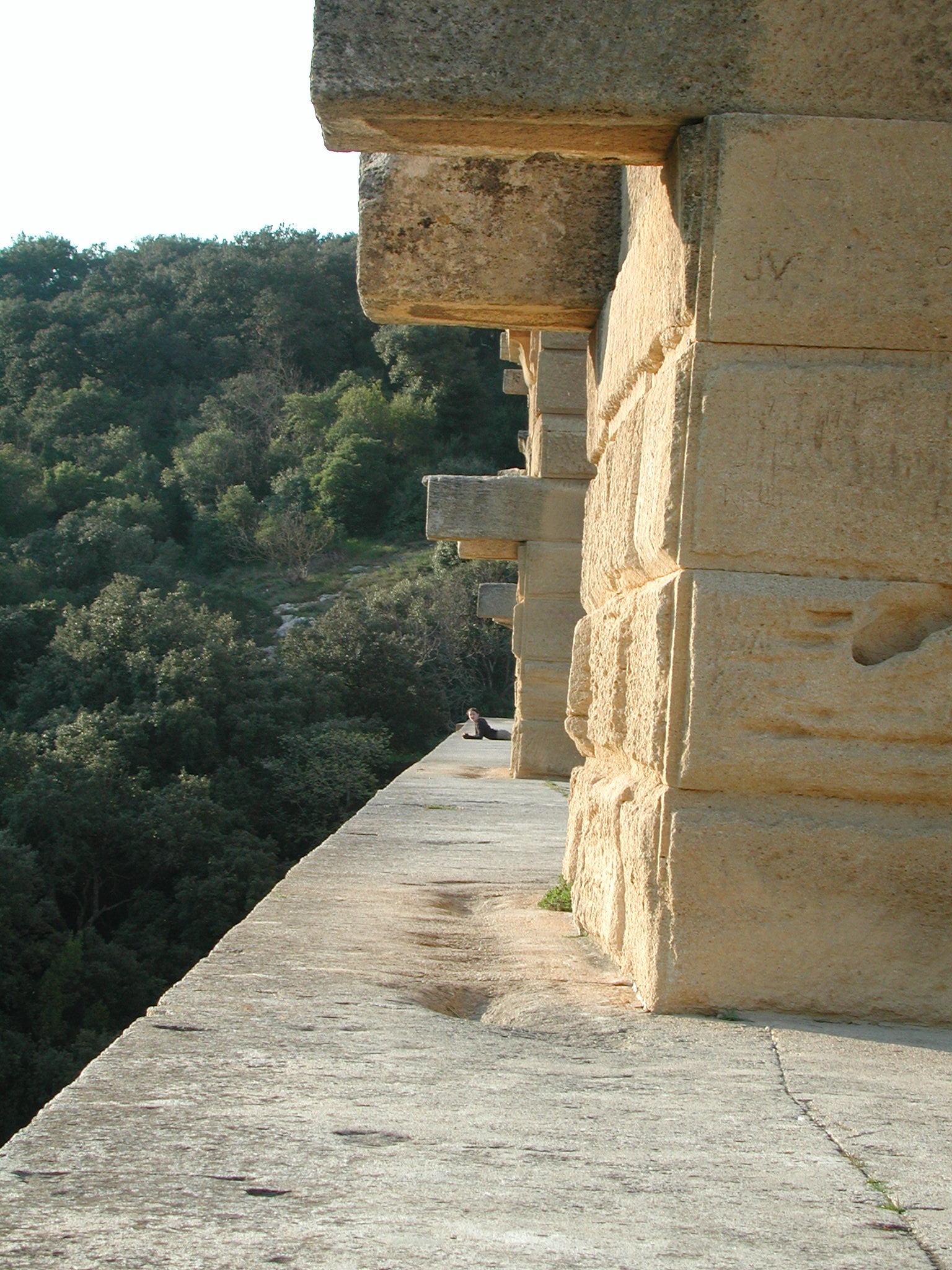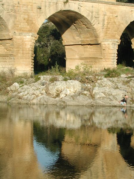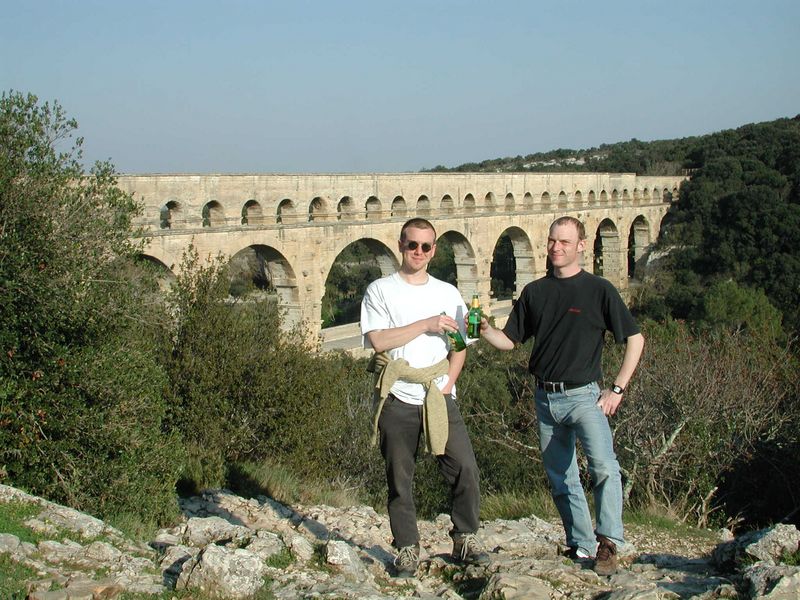 Einem Weltkulturerbe. Einem 250 Meter (von vormals 50 km) langen, vollständig erhaltenen Aquädukt; dem Pont du Gard. Diese riesige Wasserleitung der Römer läßt einen schon ins Grübeln kommen. Mehr muß man an dieser Stelle nicht sagen. Außer daß unser Reiseführer veraltet war, denn laut den Verbotschildern durfte man nicht nach ganz oben. Laut Reiseführer schon. Was solls.
