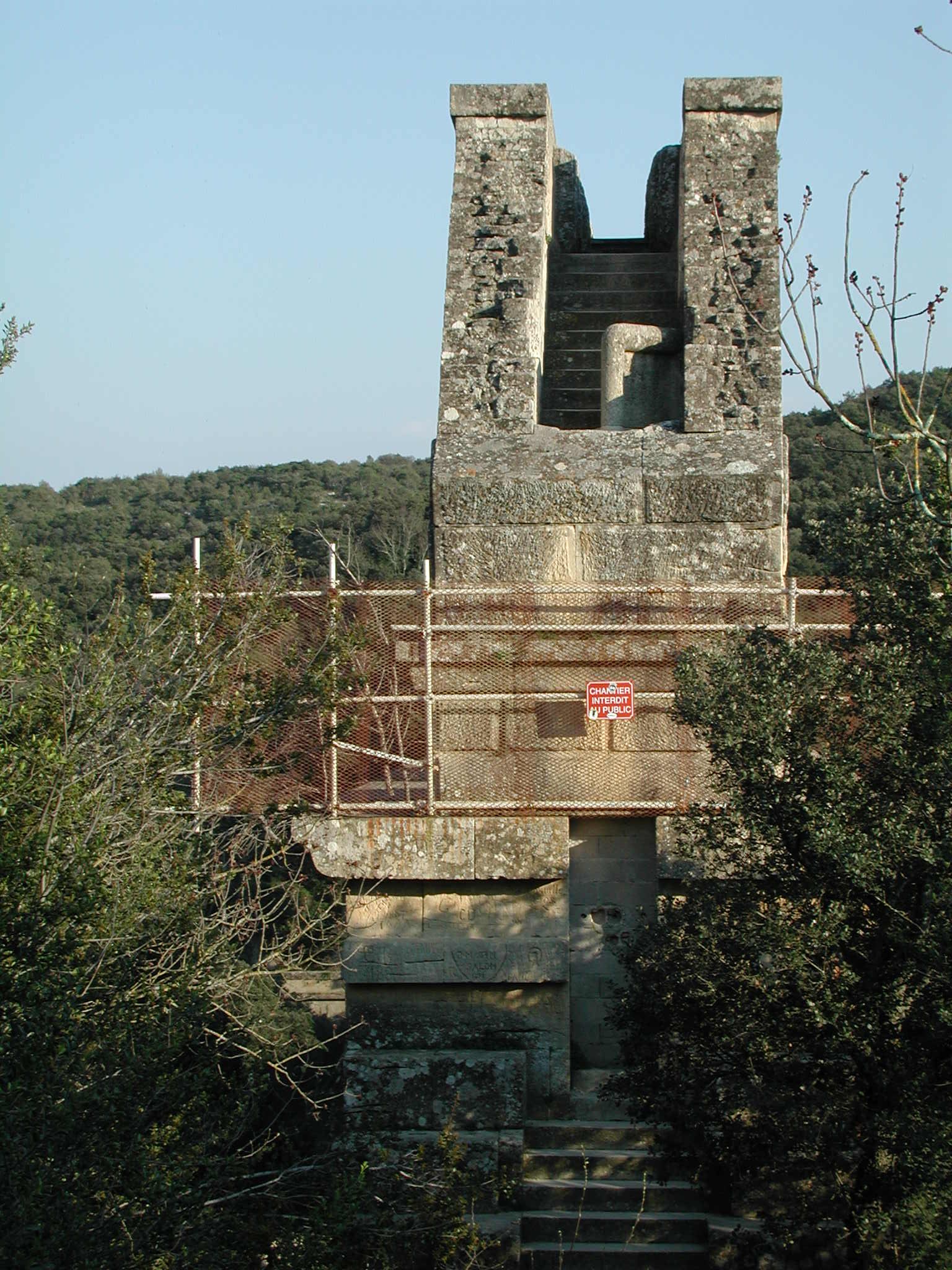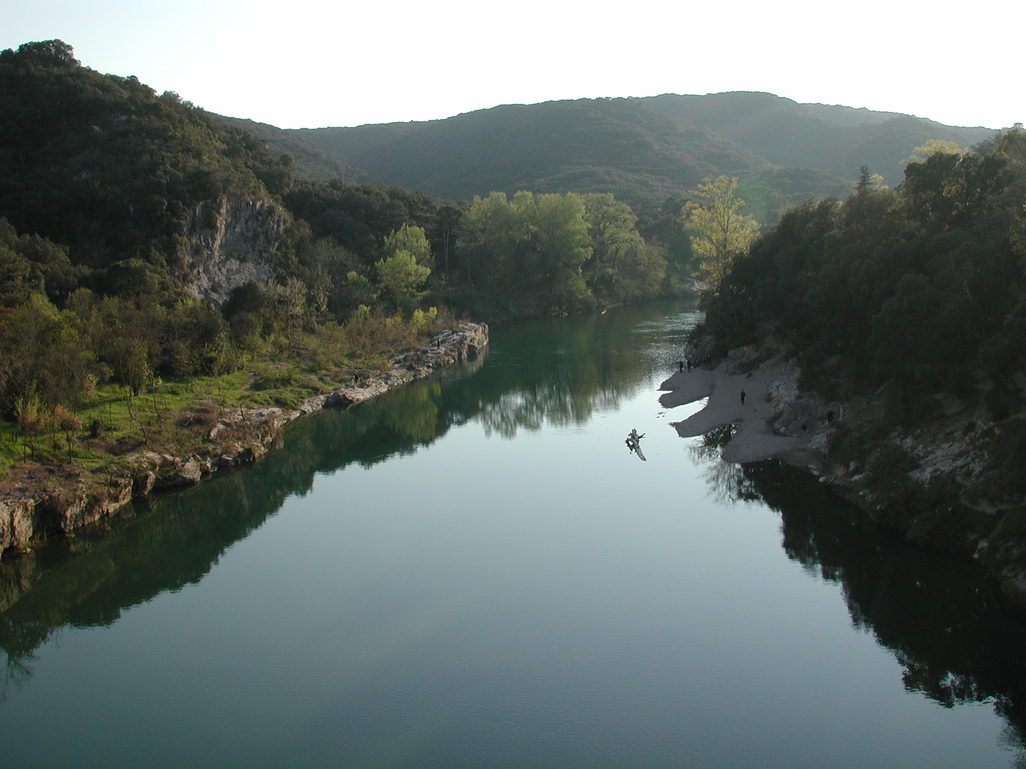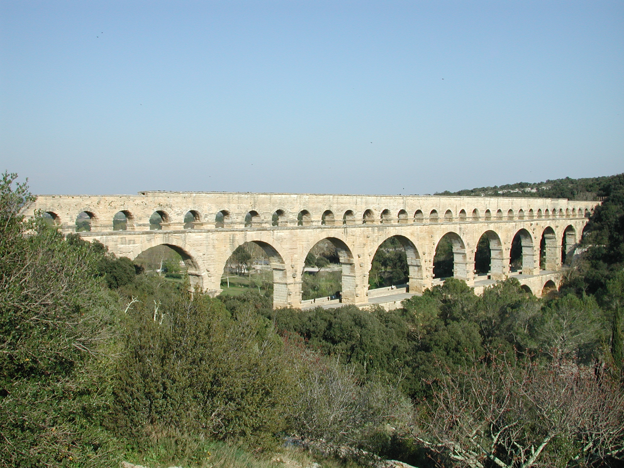 Einem Weltkulturerbe. Einem 250 Meter (von vormals 50 km) langen, vollständig erhaltenen Aquädukt; dem Pont du Gard. Diese riesige Wasserleitung der Römer läßt einen schon ins Grübeln kommen. Mehr muß man an dieser Stelle nicht sagen. Außer daß unser Reiseführer veraltet war, denn laut den Verbotschildern durfte man nicht nach ganz oben. Laut Reiseführer schon. Was solls.